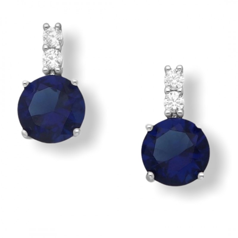 Srebrni uhani bučka z modrim cirkonijem